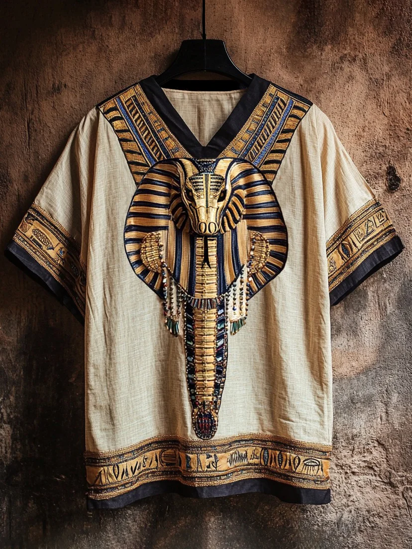 Ancient Egyptian Uraeus Embroidered Art Linen Shirt