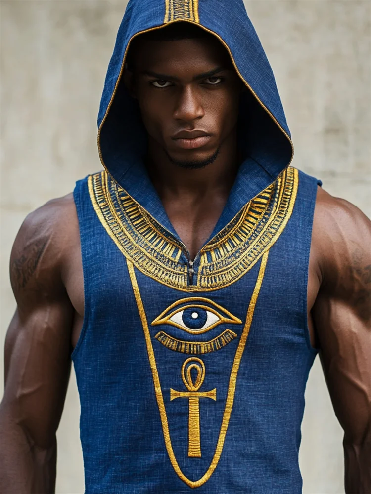 Men's Eye Of Horus Ankh Ancient Egyptian Hooded Linen Tank
