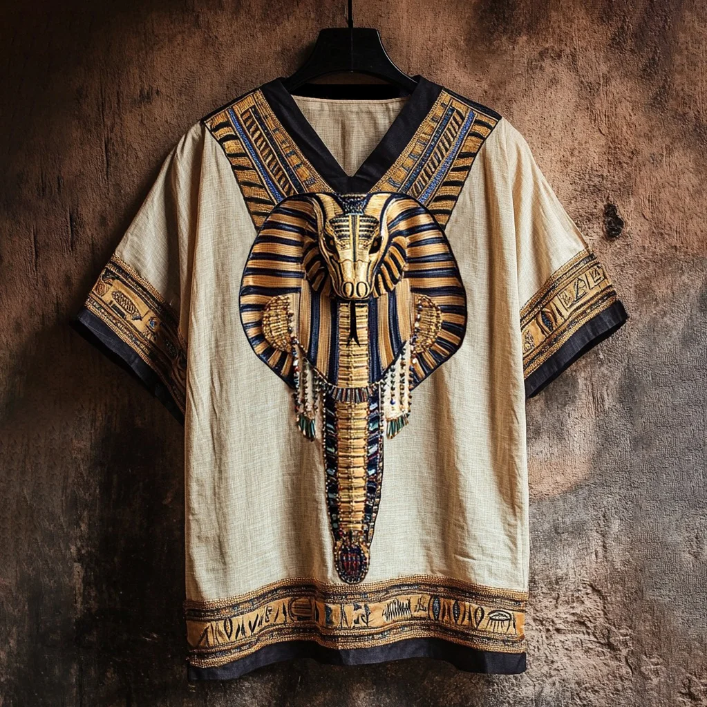 Ancient Egyptian Uraeus Embroidered Art Linen Shirt