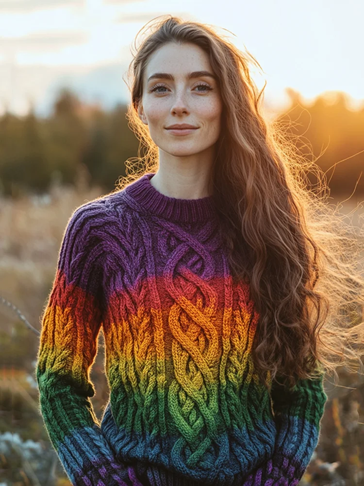 Classic Celtic Chunky Rainbow Color Round Neck Cozy Sweater