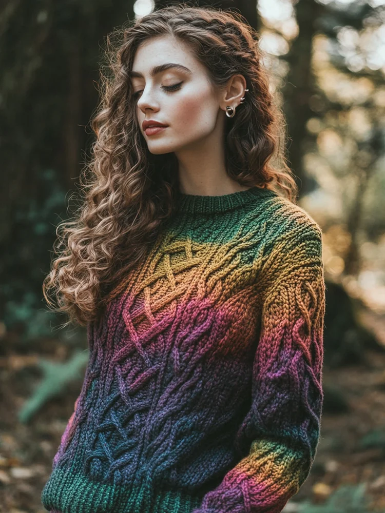 Classic Celtic Chunky Rainbow Color Round Neck Cozy Sweater