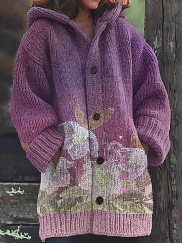 Fashion Gradient Flower Knitted Cardigan Sweater