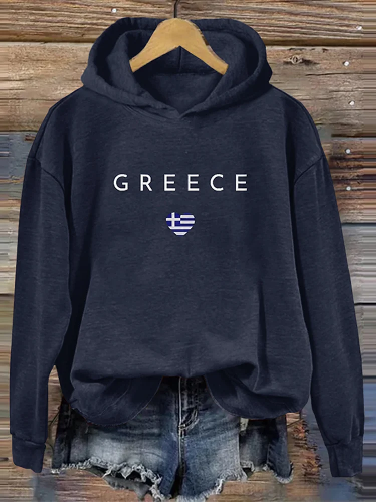 Greece Print Long Sleeves Casual Hoodie