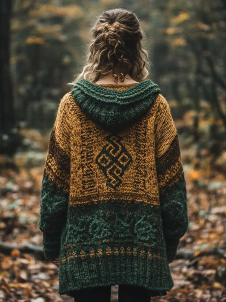 Irish Vintage Jacquard Contrast Hooded Sweater Cardigan