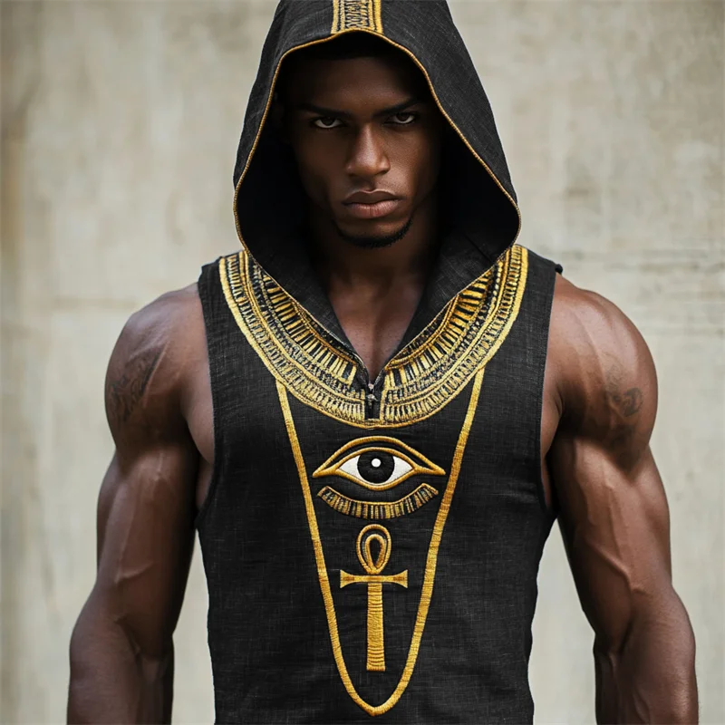 Men's Eye Of Horus Ankh Ancient Egyptian Hooded Linen Tank