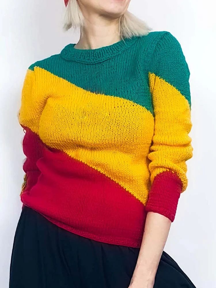 Reggae Inspired Contrast Color Cozy Knit Sweater