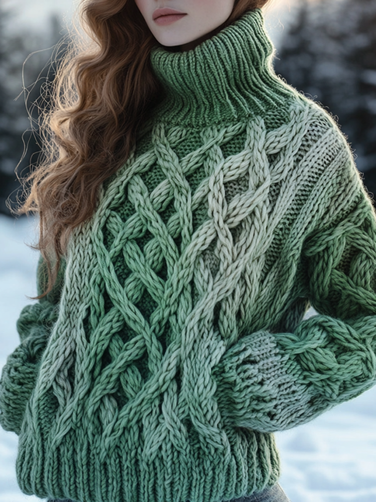 Retro Celtic Knot Knitted Gradient Turtleneck Sweater