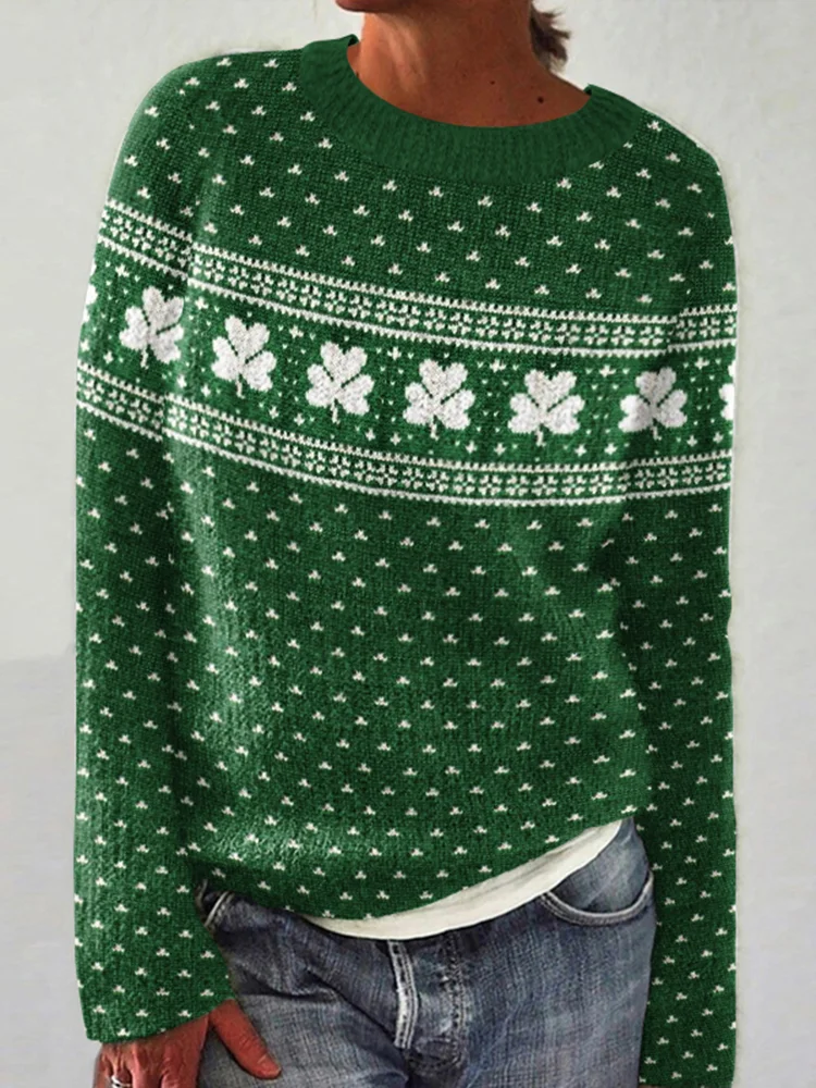 St. Patrick's Day Shamrock Pattern Knit Sweater