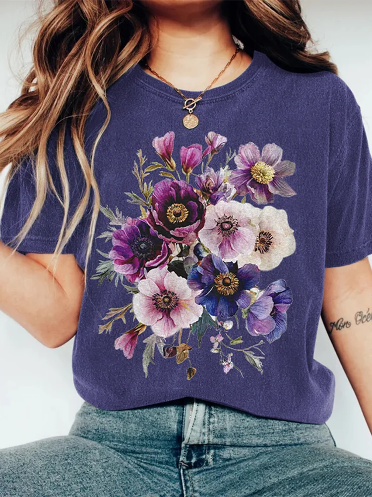 Vintage Botanical Purple Floral Art Short Sleeve Casual T-shirt