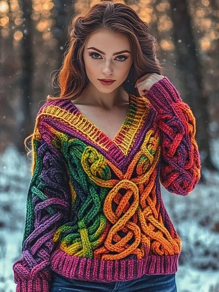 Vintage Celtic Knot Rainbow Irish Aran Sweater