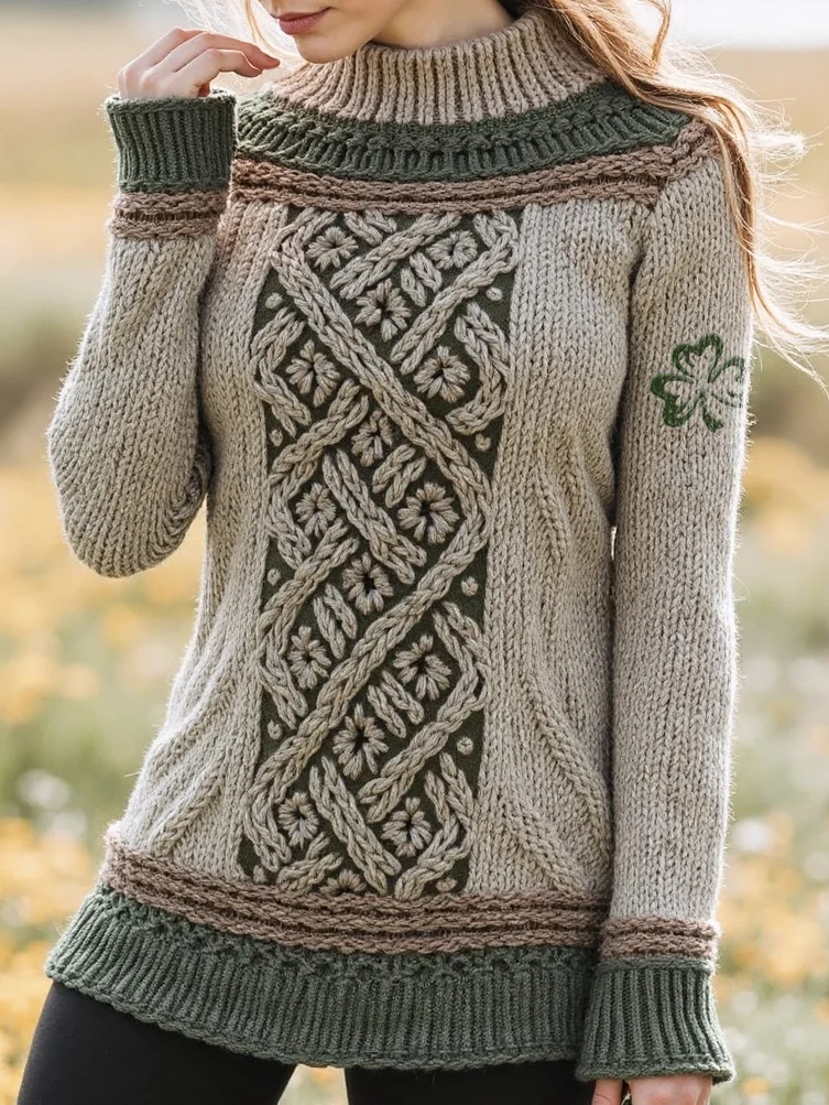 Women's Celtic Classic Knotted Contrast Jacquard Sweater