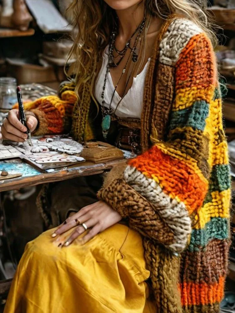 Women's Colorful Patchwork Pattern Print Cardigan