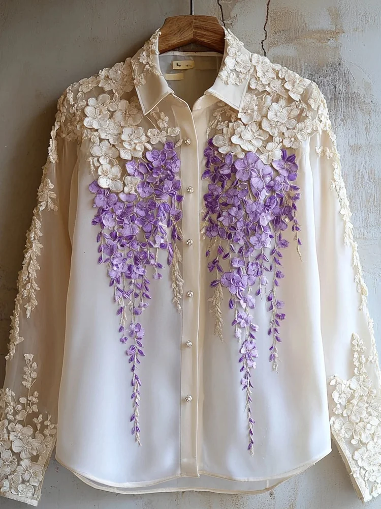 Women's Flowers Embroidered Elegant Shirt