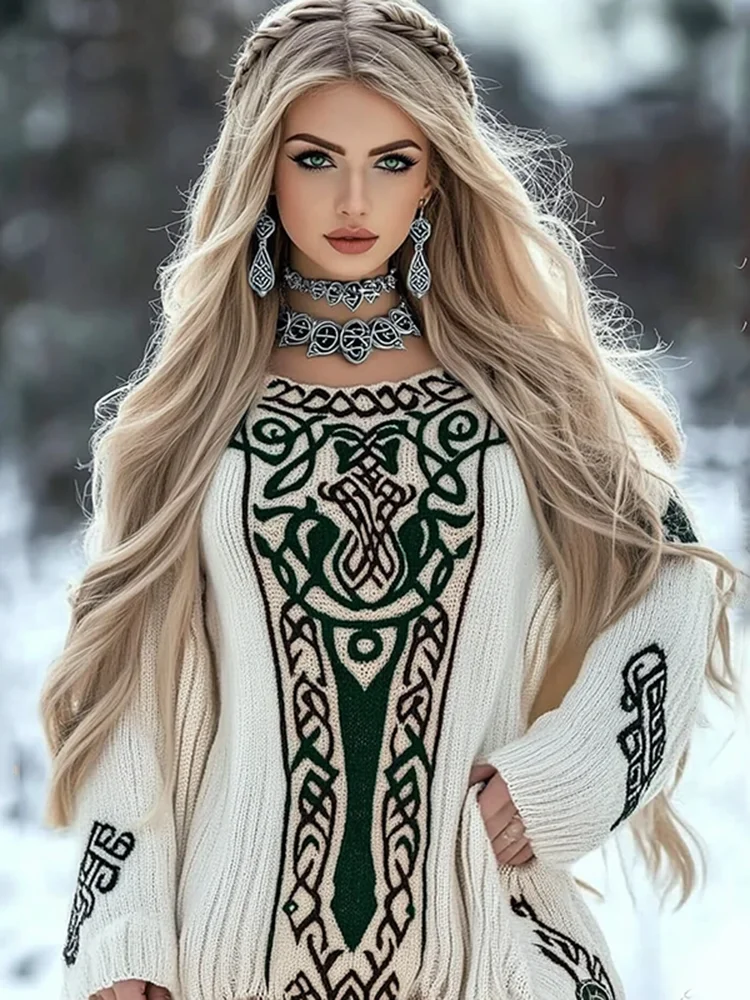 Women's Geometry Celtic Patterns Art Cozy Crew Neck Sweater