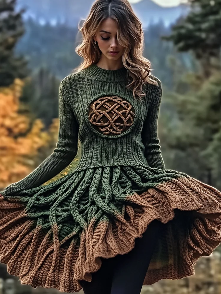 Women's Irish Celtic Knot Contrast Sweater Dress