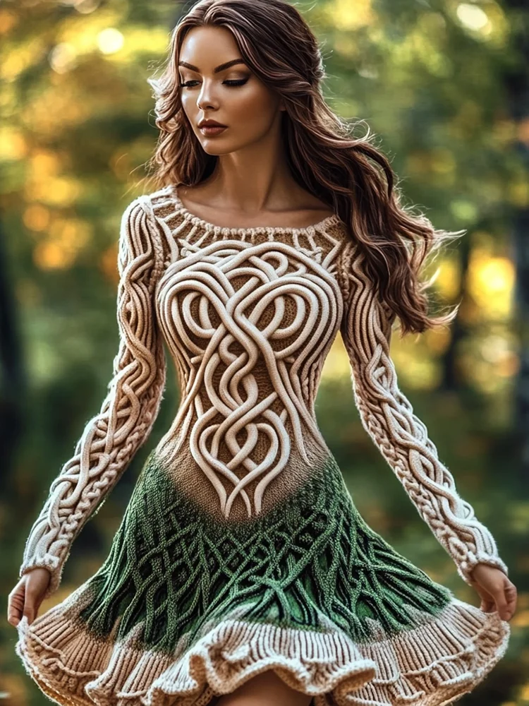 Women's Irish Celtic Knot Cozy Knit Midi Dress