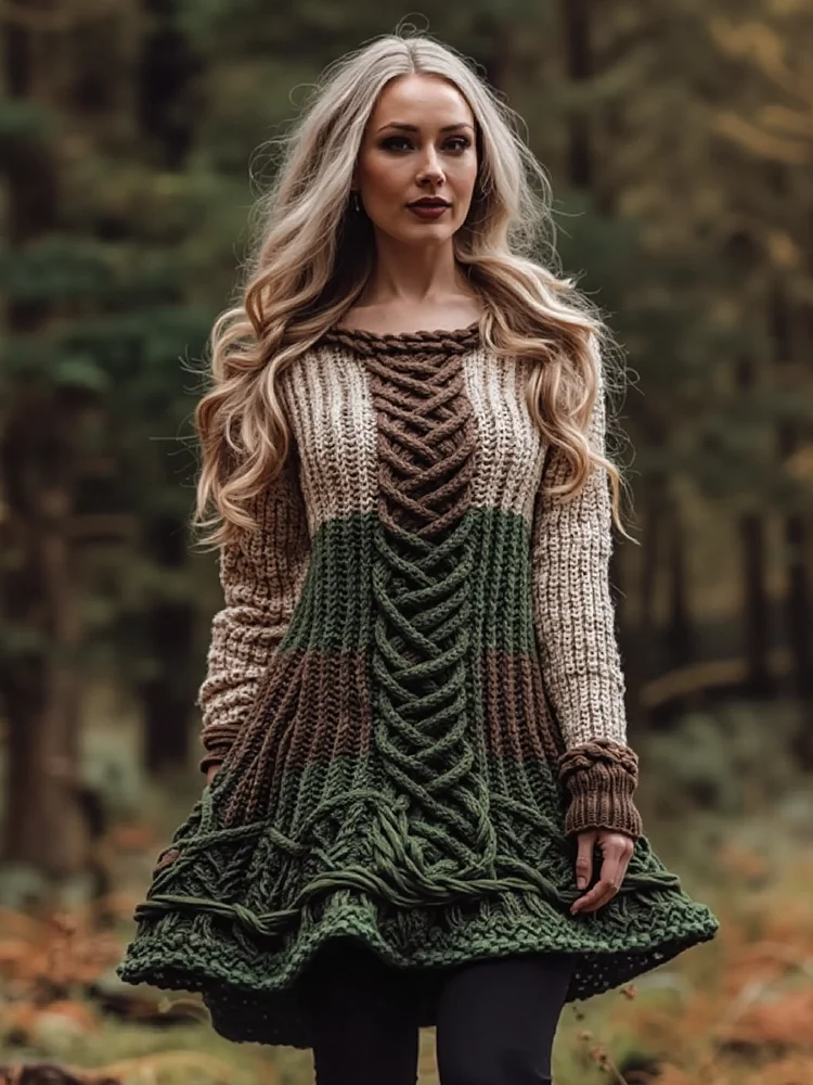 Women's Irish Celtic Knot Gradient Knit Sweater Dress