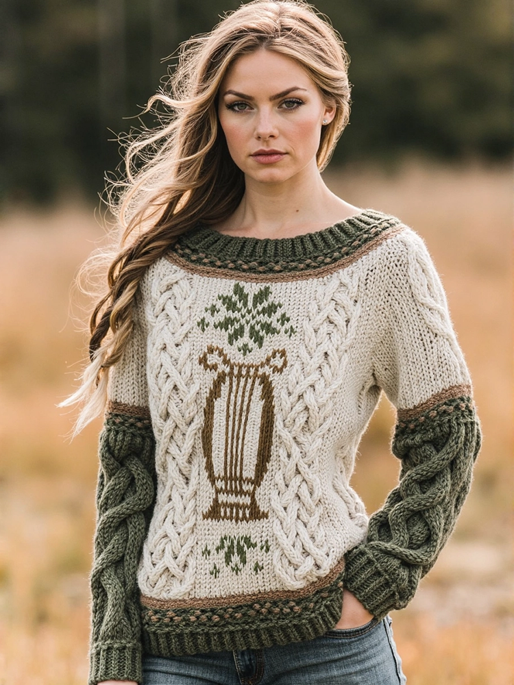 Women's Irish Celtic Knot Harp Jacquard Sweater