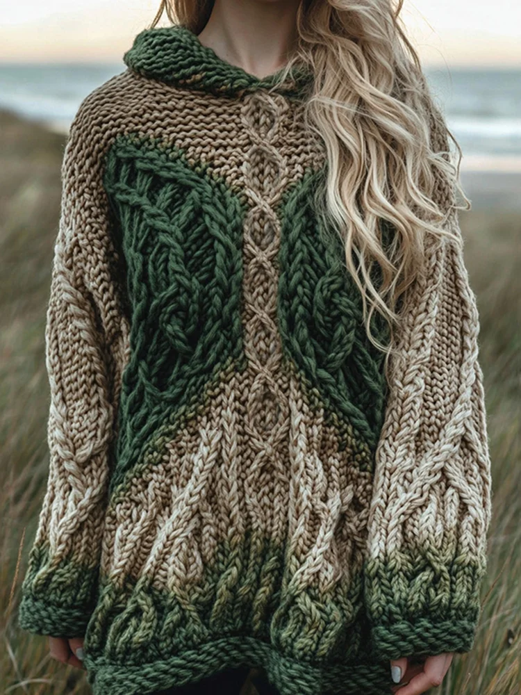 Women's Irish Celtic Knotted Contrast Hooded Sweater