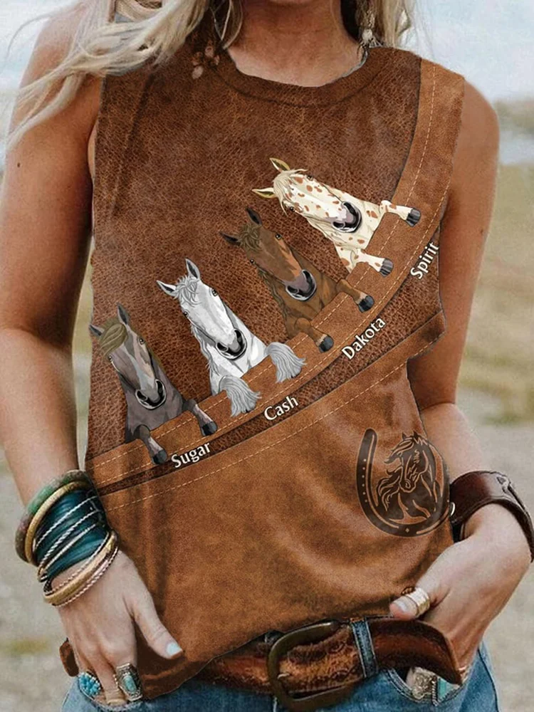 Women's Retro Horse Print Horse Lovers Casual Tank Top