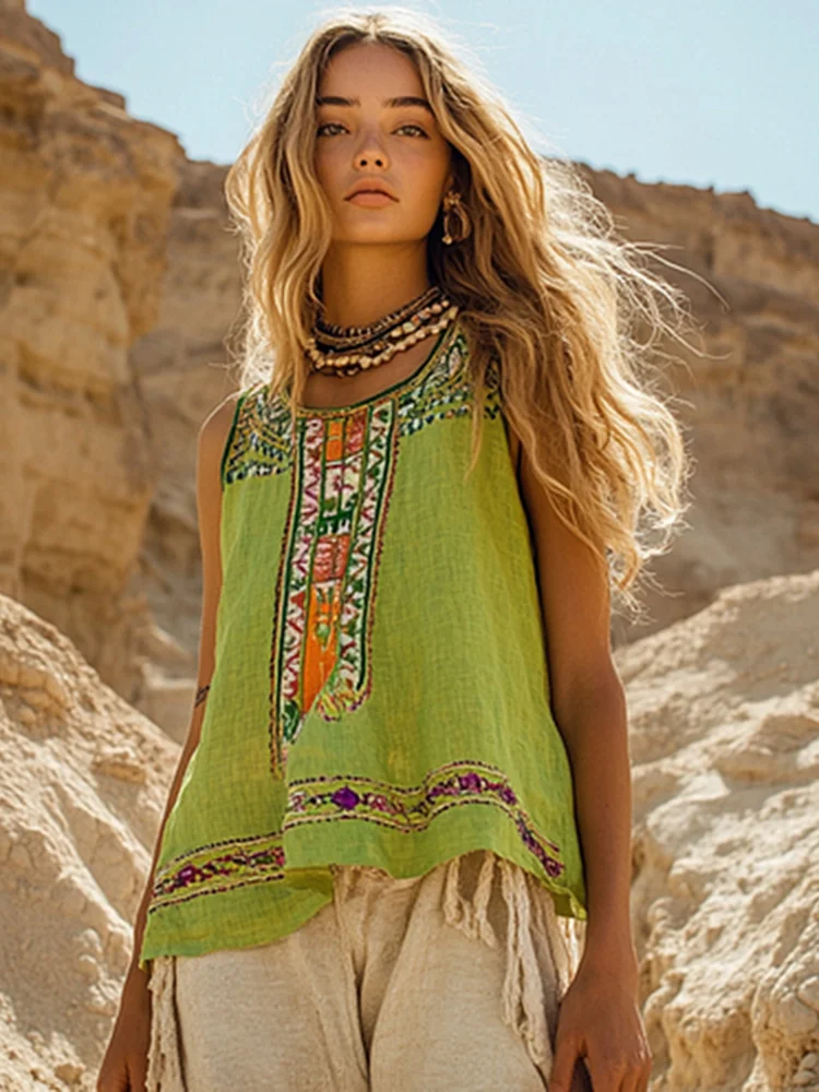 Women's Retro Loose Bohemia Ethnic Style Linen Sleeveless Top