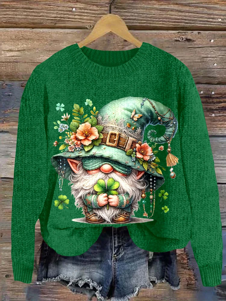 Women'S St. Patrick'S Day Gnome Knitted Cozy Sweater