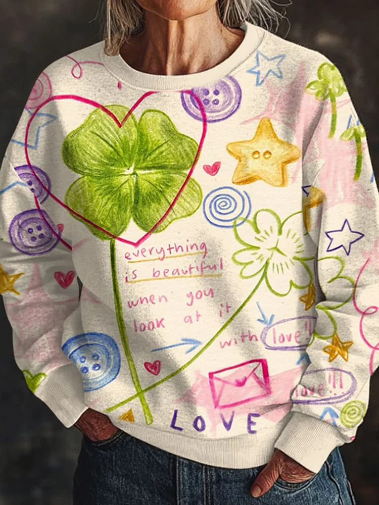 Women's St. Patrick's Day Graffiti Shamrock Print Sweatshirt