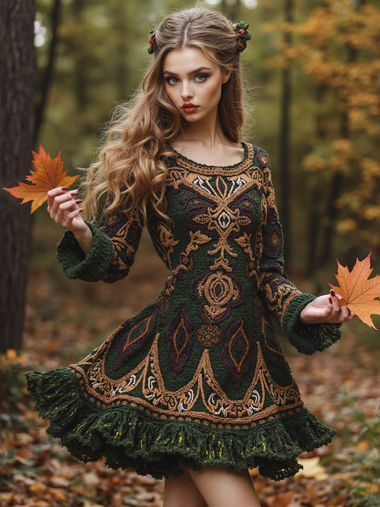 Women's Vintage Irish Knit Sweater Midi Dress